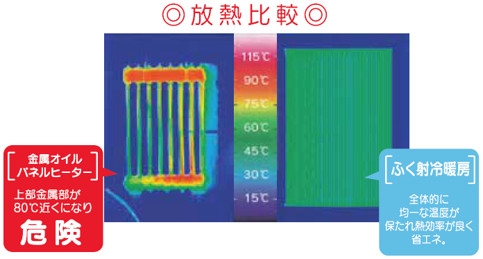 パネル面からのふく射(遠赤外線)の放射が均一なため、室内のどこにいても温度ムラがなく、心地良い温度環境を保ちます。
