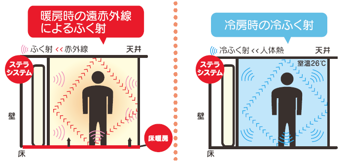 冷暖房時のふく射のイメージ