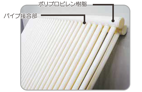 金属製パネルヒーターとちがい、腐食が無く、長持ち。リサイクルも可能!